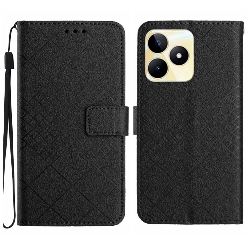 For Realme C53 / C51 / Narzo N53 Rhombic Grid Texture Leather Phone Case(Black)