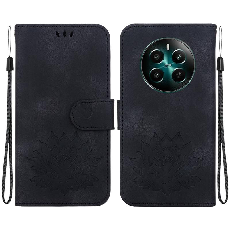 For Realme C53 / C53 India / C51 Lotus Embossed Leather Phone Case(Black)