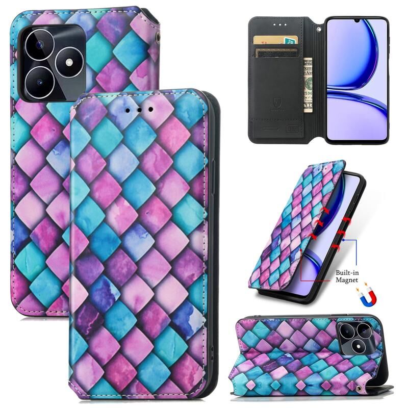 Θήκη για Realme C53 CaseNeo Πολύχρωμη Μαγνητική Δερμάτινη Θήκη Τηλεφώνου (Μωβ Λέπια)