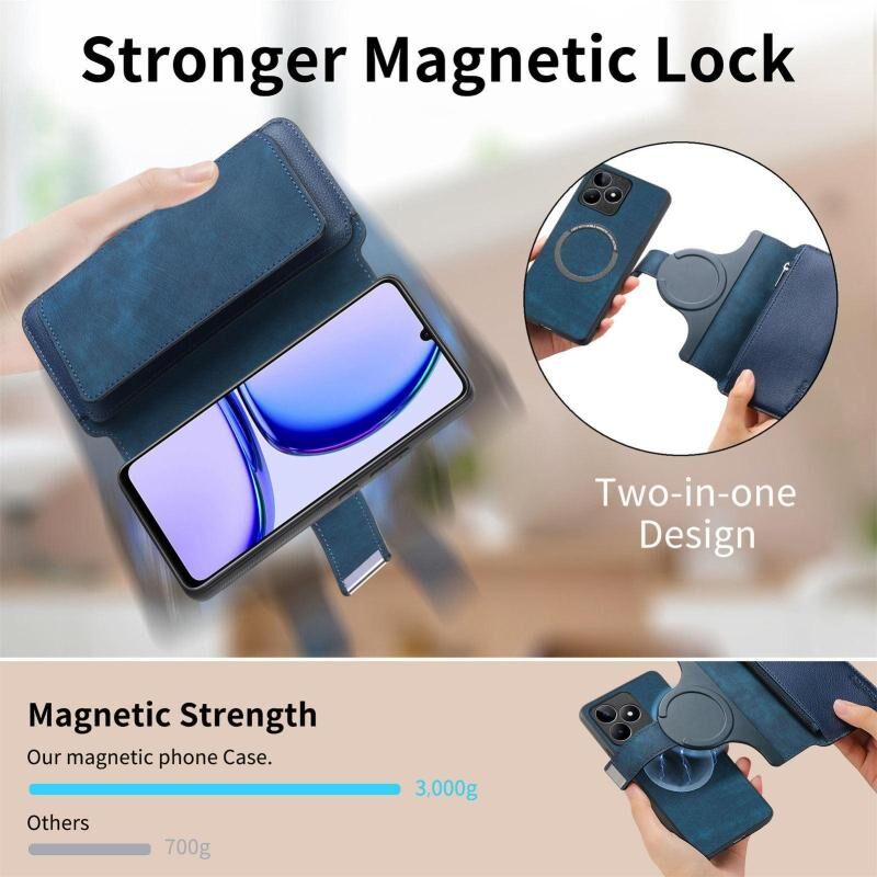 For Realme C53 CaseNeo MagSafe RFID Anti-theft Zipper Wallet Retro Leather Phone Case(Blue) (CaseNeo)