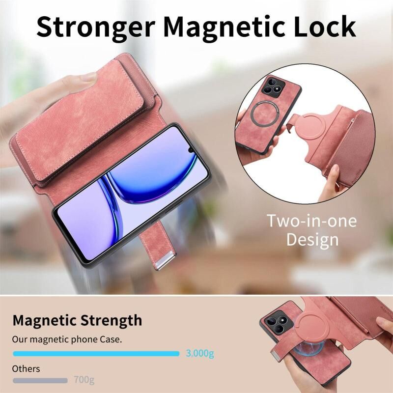 For Realme C53 CaseNeo MagSafe RFID Anti-theft Zipper Wallet Retro Leather Phone Case(Pink) (CaseNeo)