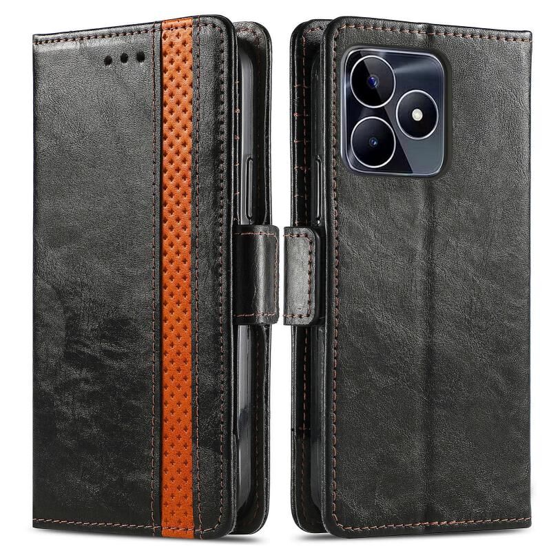 Για Realme C53 CaseNeo Splicing Διπλή μαγνητική πόρπη δερμάτινη θήκη τηλεφώνου (μαύρο)
