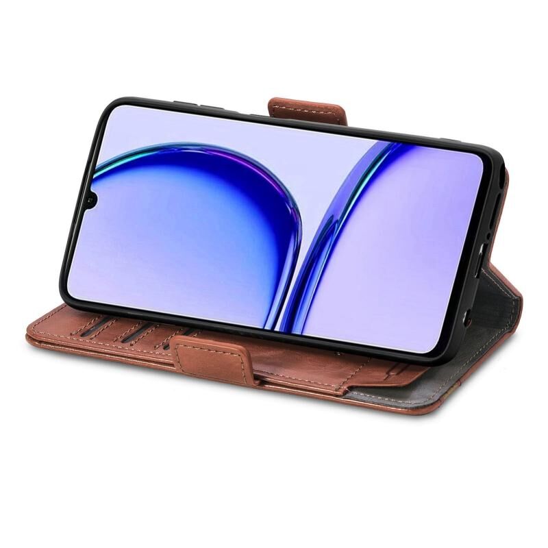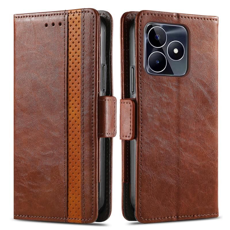 Για Realme C53 CaseNeo Splicing Διπλή μαγνητική πόρπη δερμάτινη θήκη τηλεφώνου (καφέ)