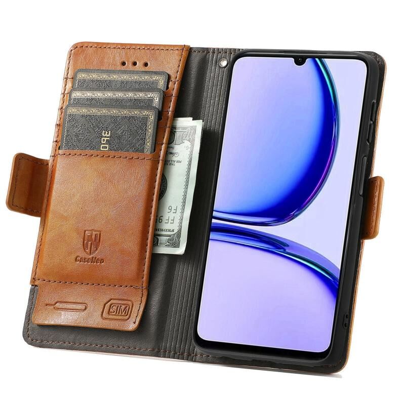 Για Realme C53 CaseNeo Splicing Διπλή μαγνητική πόρπη δερμάτινη θήκη τηλεφώνου (χακί)