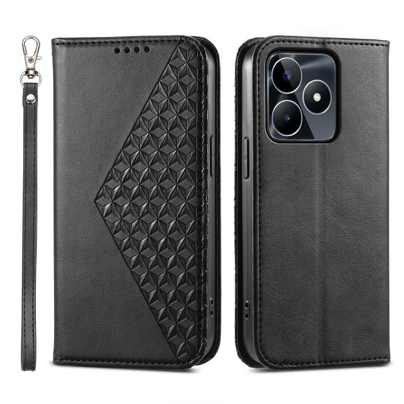 For Realme C53 Cubic Grid Calf Texture Magnetic Leather Phone Case(Black)