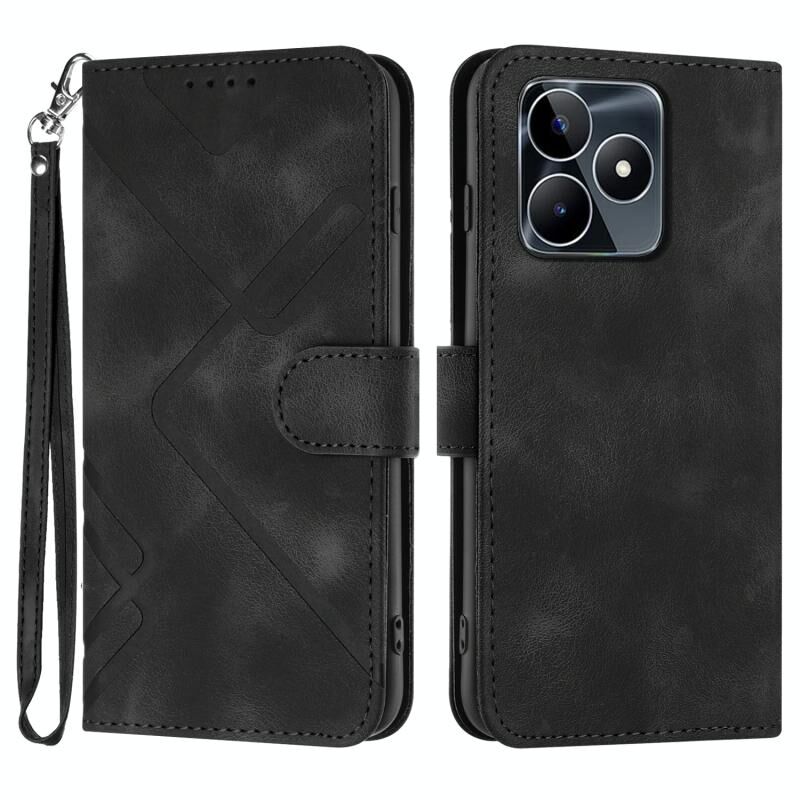 Για Realme C53 Γραμμή μοτίβο δέρμα αίσθηση δέρμα τηλέφωνο υπόθεση (μαύρο)