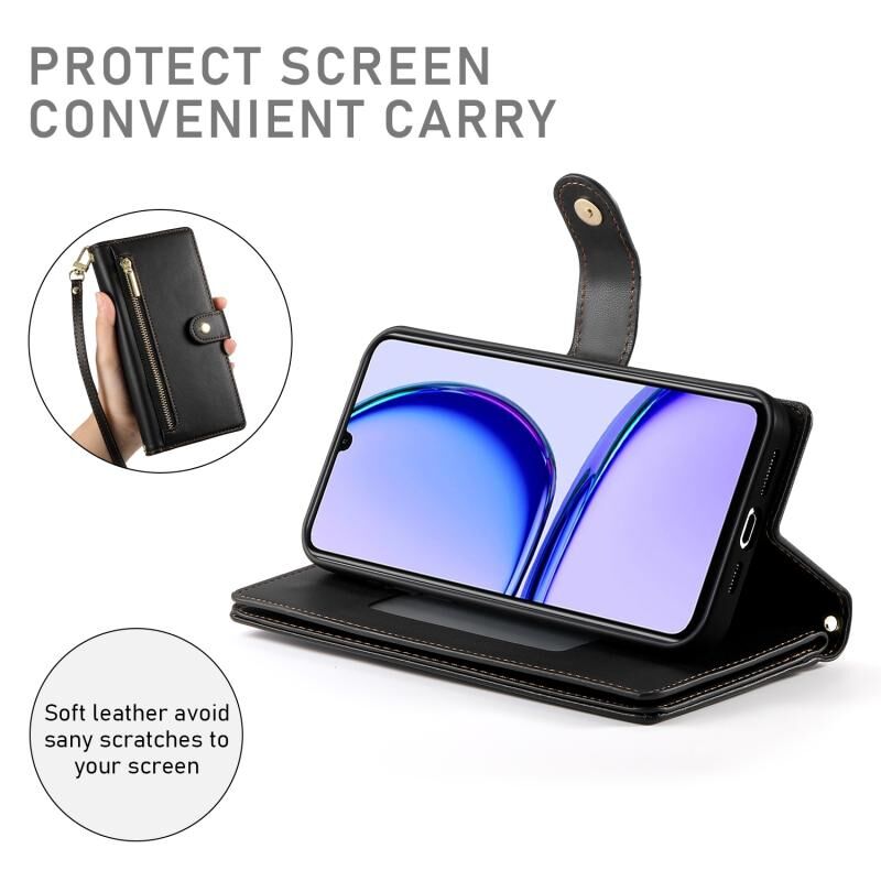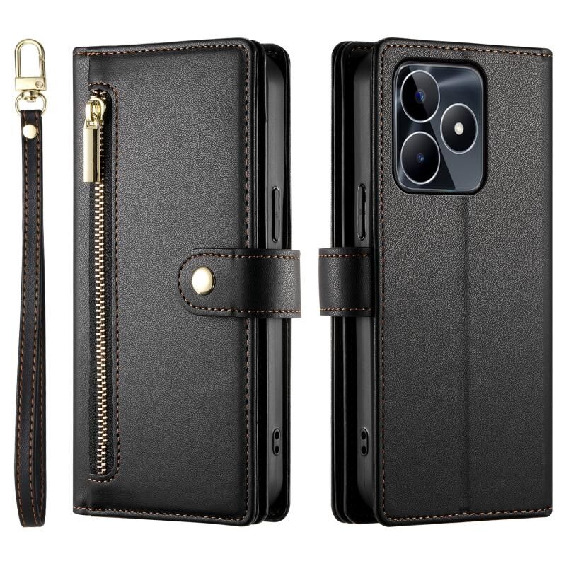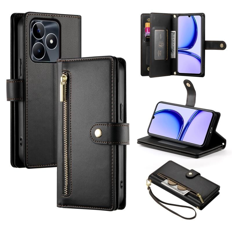 For Realme C53 / Narzo N53 4G Nine Card-slot Zipper Wallet Bag Leather Phone Case(Black)