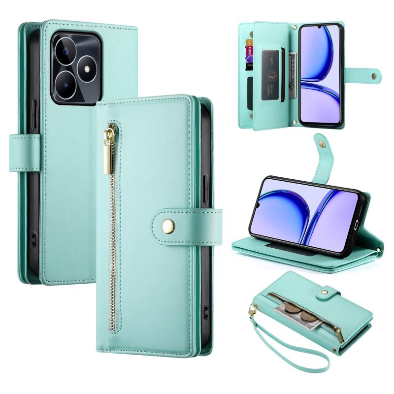 For Realme C53 / Narzo N53 4G Nine Card-slot Zipper Wallet Bag Leather Phone Case(Mint Green)