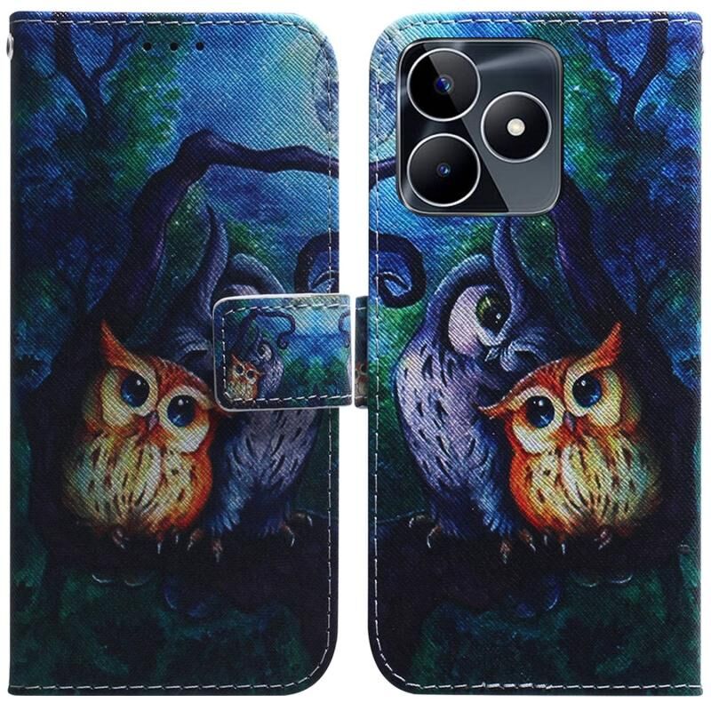 Θήκη τηλεφώνου από δέρμα με σχέδιο flip για Realme C53 / Narzo N53 (κουκουβάγια ζωγραφισμένη με λάδι)