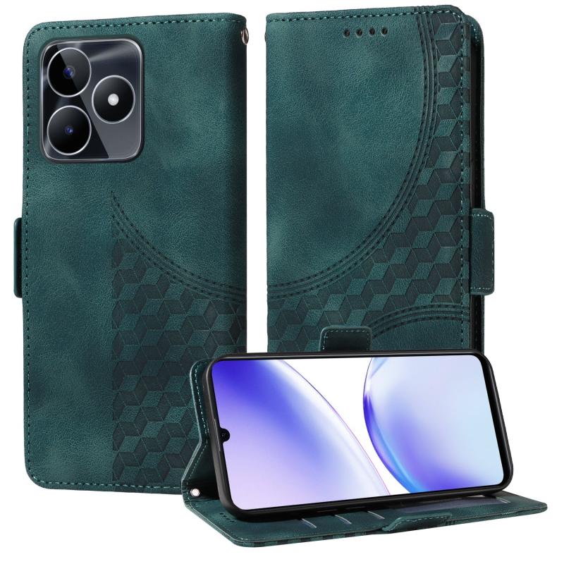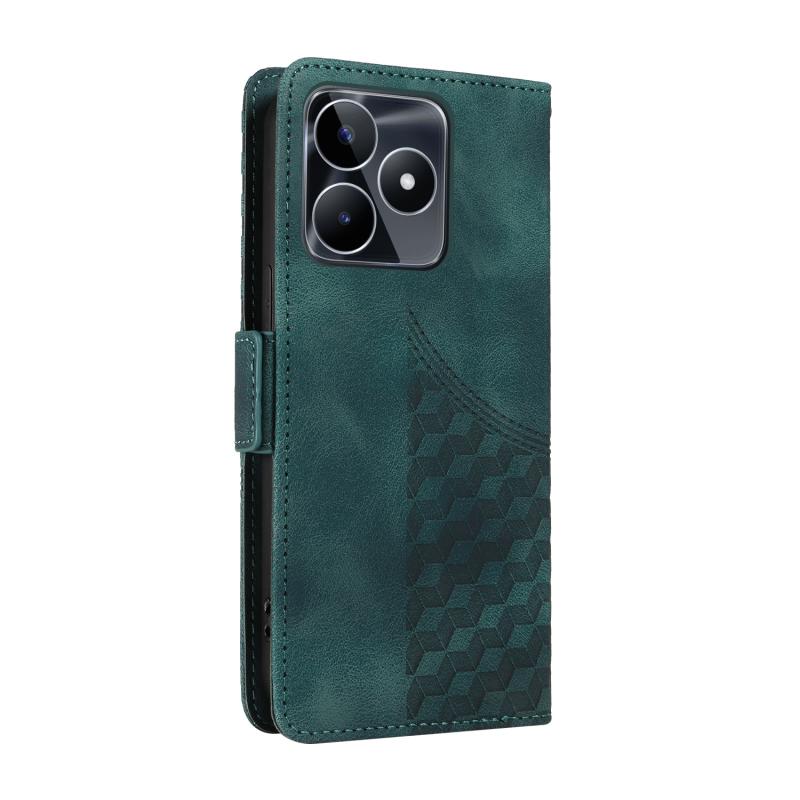 For Realme C53 / Narzo N53 Embossed Rhombus Starry Leather Phone Case(Green)
