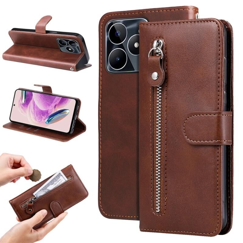 For Realme C53 / Narzo N53 Fashion Calf Texture Zipper Leather Phone Case(Brown)
