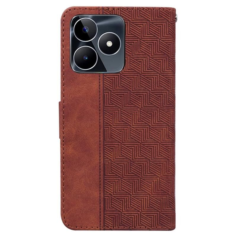 Για Realme C53 / Narzo N53 Γεωμετρική ανάγλυφη δερμάτινη θήκη τηλεφώνου (καφέ)