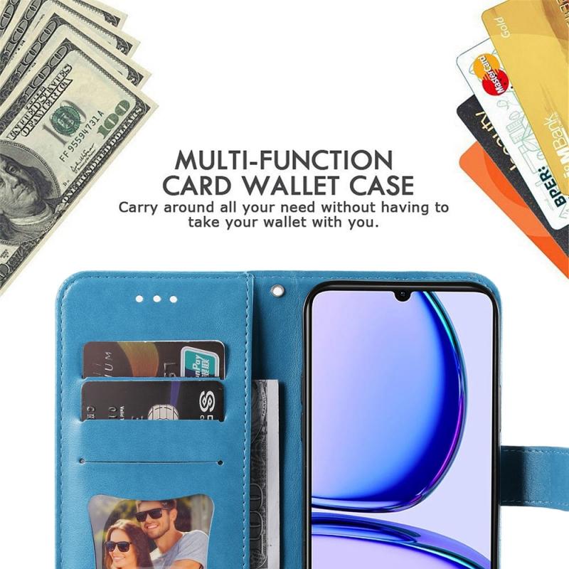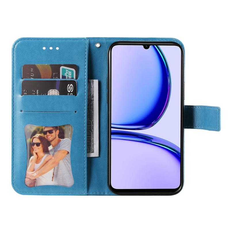 For Realme C53 / Narzo N53 Seven-petal Flowers Embossing Leather Phone Case(Blue)
