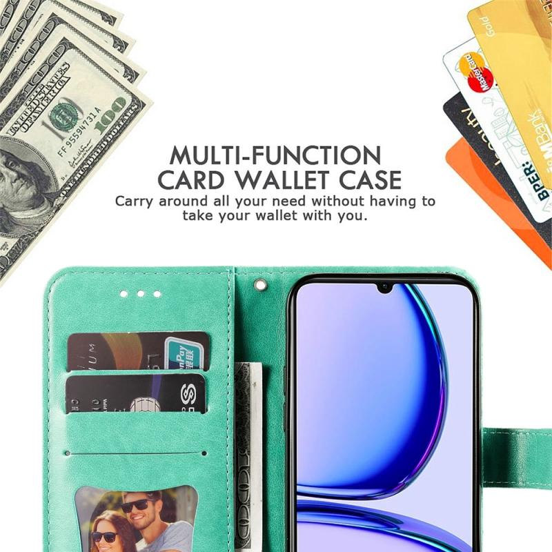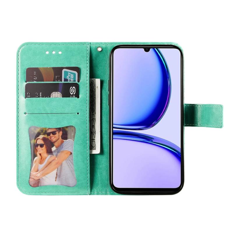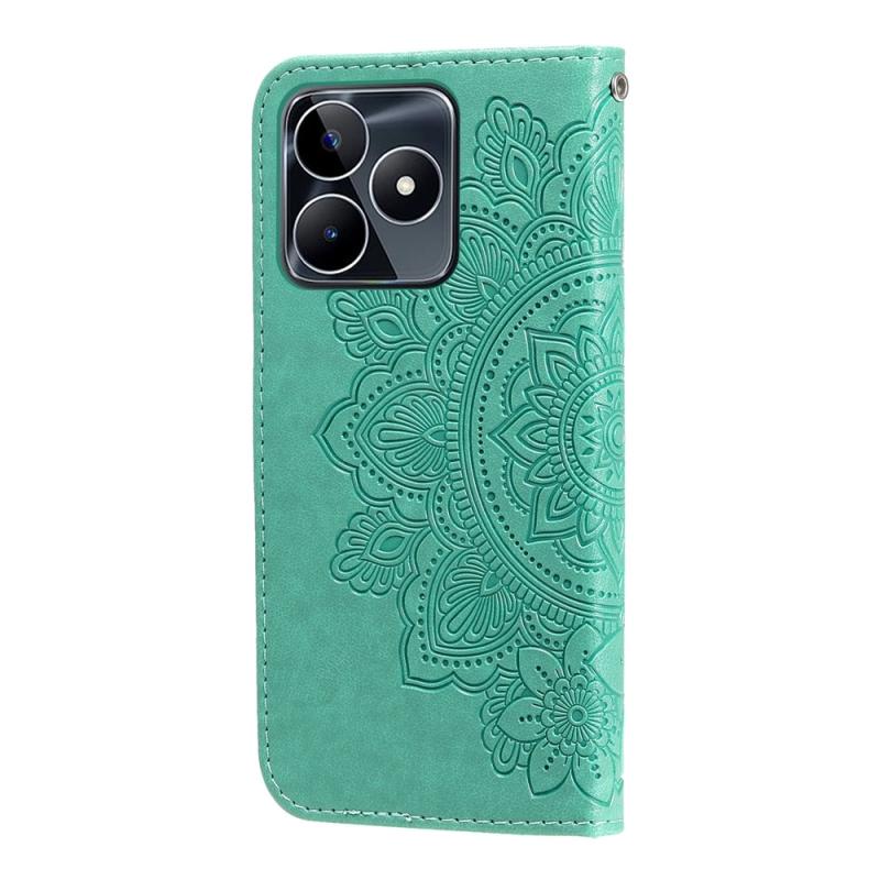 For Realme C53 / Narzo N53 Seven-petal Flowers Embossing Leather Phone Case(Green)