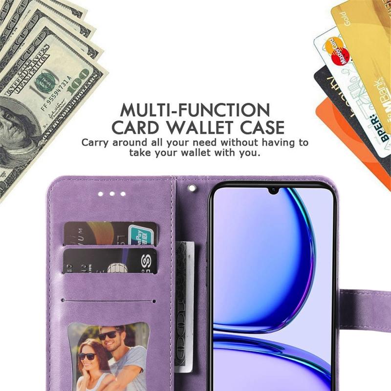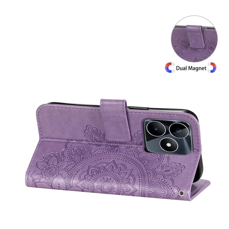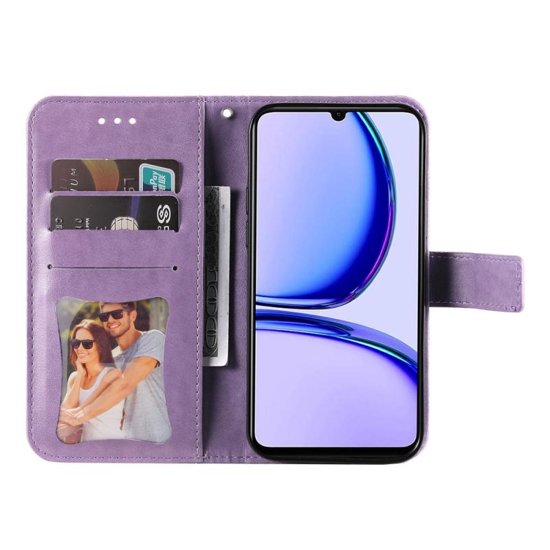 For Realme C53 / Narzo N53 Seven-petal Flowers Embossing Leather Phone Case(Light Purple)