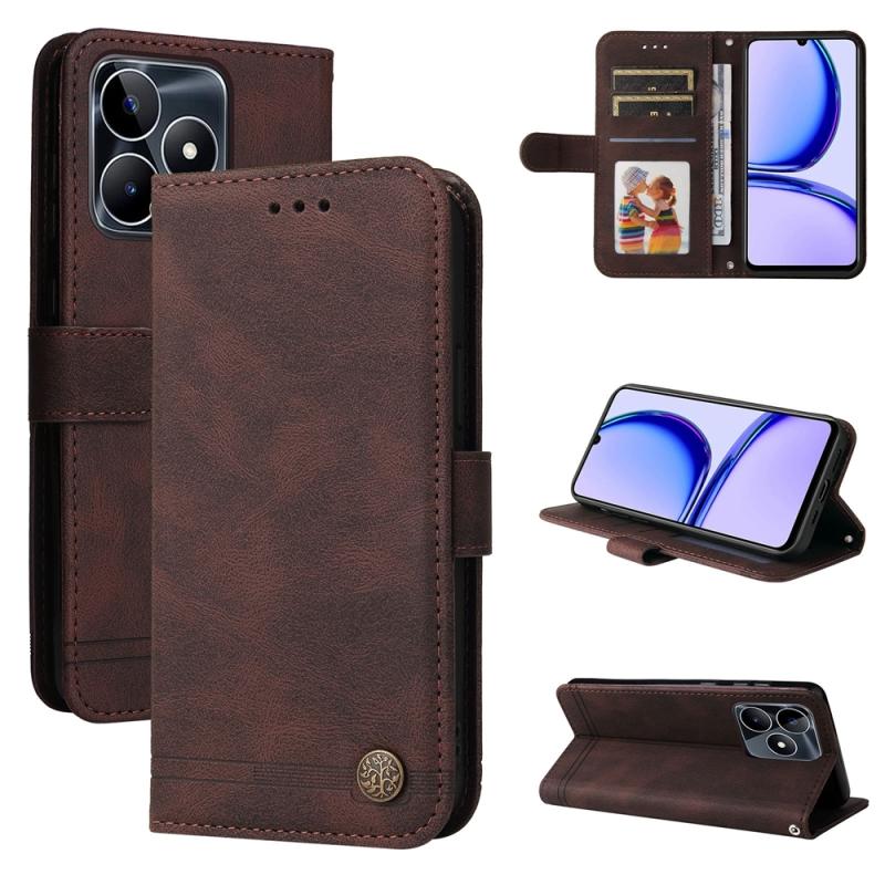 For Realme C53 / Narzo N53 Skin Feel Life Tree Metal Button Leather Phone Case(Brown)