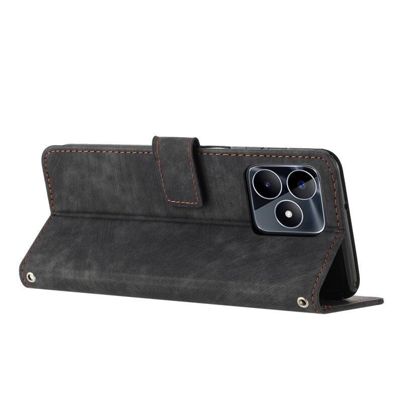 For Realme C53/Narzo N53 Skin Feel Stripe Pattern Leather Phone Case with Lanyard(Black)