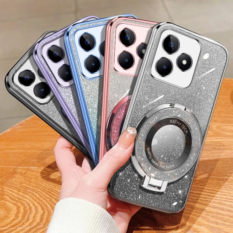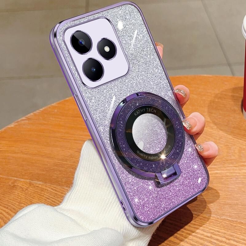 For Realme C53 Plated Gradient Glitter Round Holder TPU Phone Case(Purple)