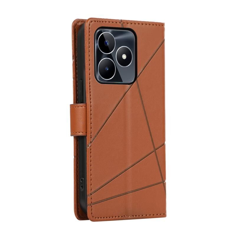 For Realme C53 PU Genuine Leather Texture Embossed Line Phone Case(Brown)