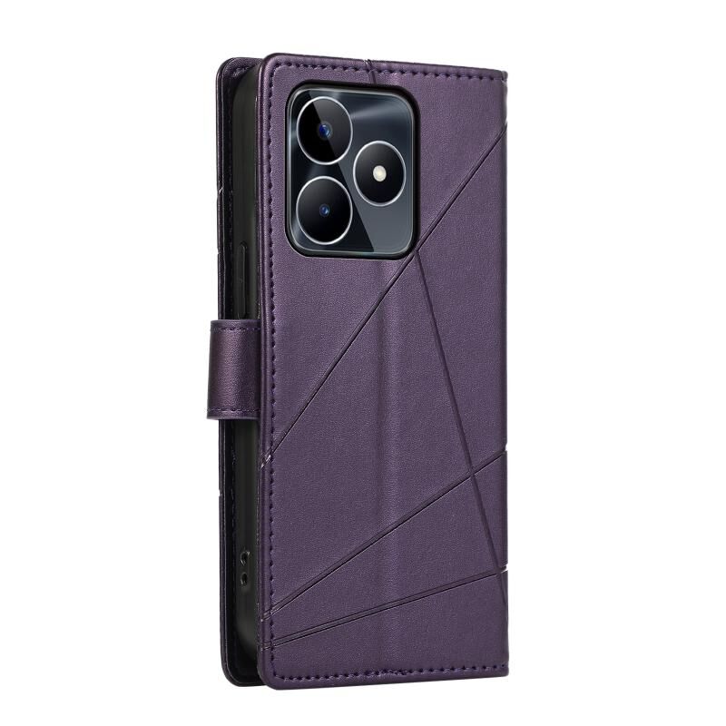 For Realme C53 PU Genuine Leather Texture Embossed Line Phone Case(Purple)