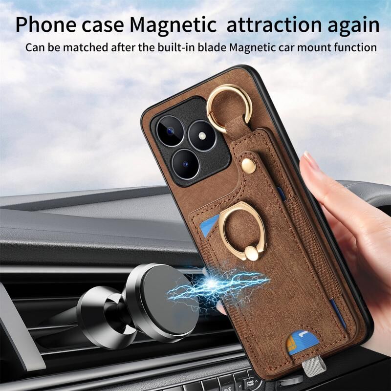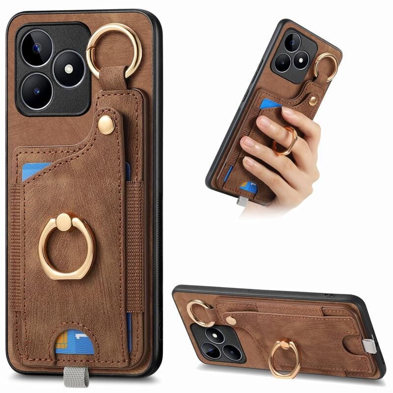 Για Realme C53 Ρετρό δέρμα αίσθηση δαχτυλίδι τσάντα κάρτα υπόθεση τηλεφώνου με κρεμάσει βρόχο (καφέ)
