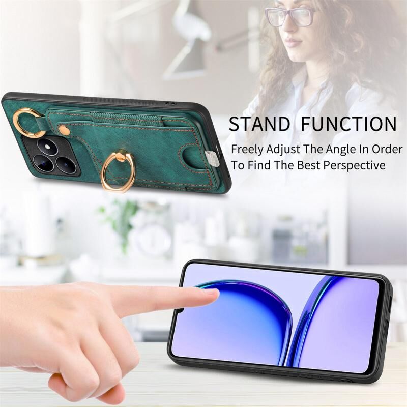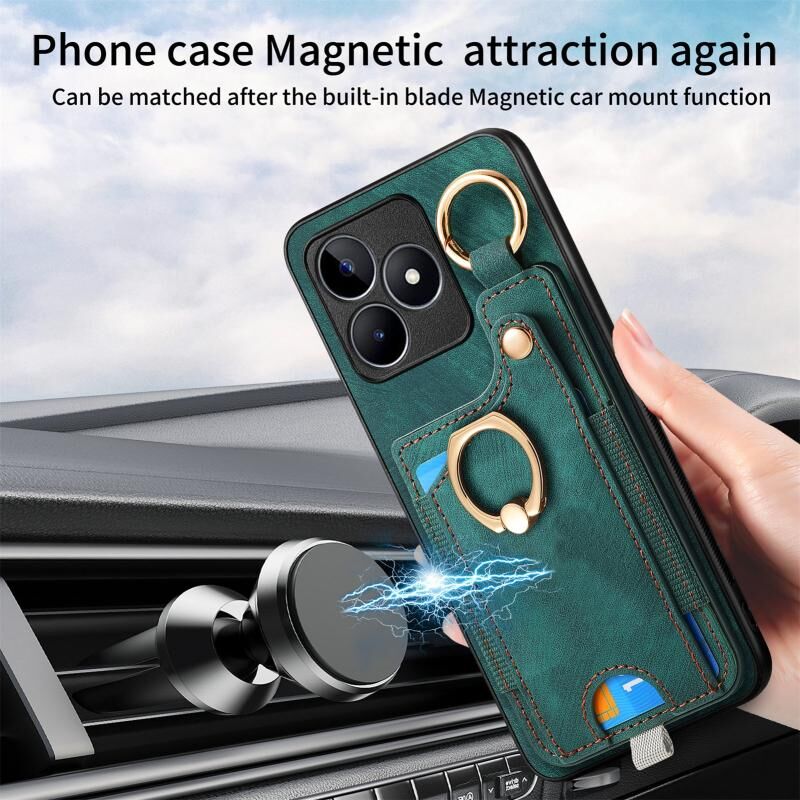 Για Realme C53 Ρετρό δέρμα αίσθηση δαχτυλίδι τσάντα κάρτα υπόθεση τηλεφώνου με κρεμάσει βρόχο (πράσινο)