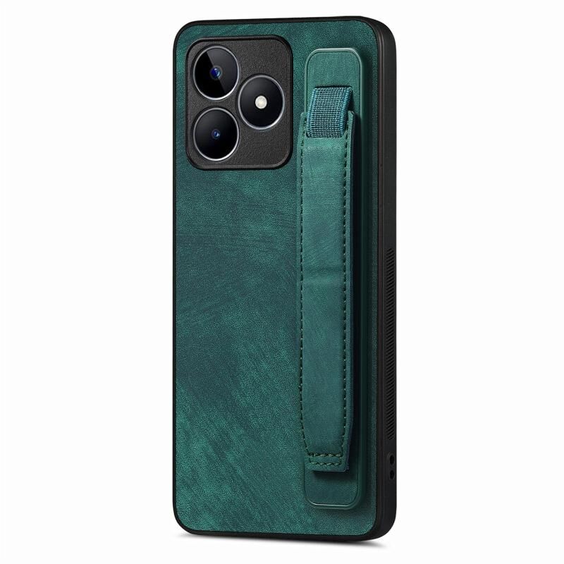 Για Realme C53 Ρετρό Wristband κάτοχος δέρμα πίσω τηλέφωνο υπόθεση (πράσινο)