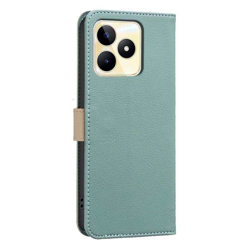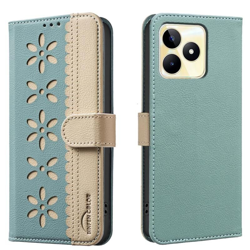 For Realme C53 Splicing Color Hollow Flower Pattern RFID Leather Phone Case(Green)
