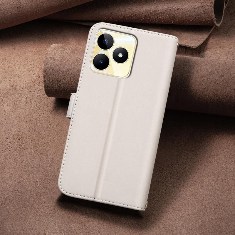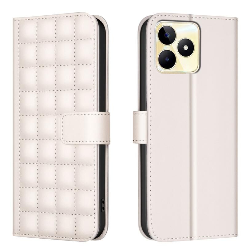 Θήκη τηλεφώνου Realme C53 με υφή δέρματος και τετράγωνο σχέδιο (Μπεζ)