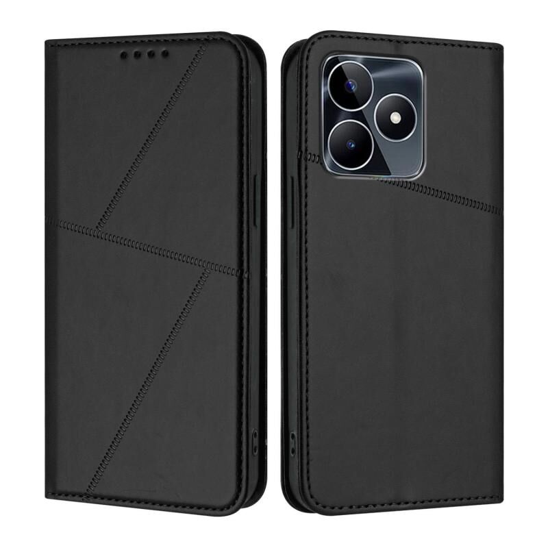 For Realme C53 Strong Magnetic Frosted Flip Leather Phone Case(Black)