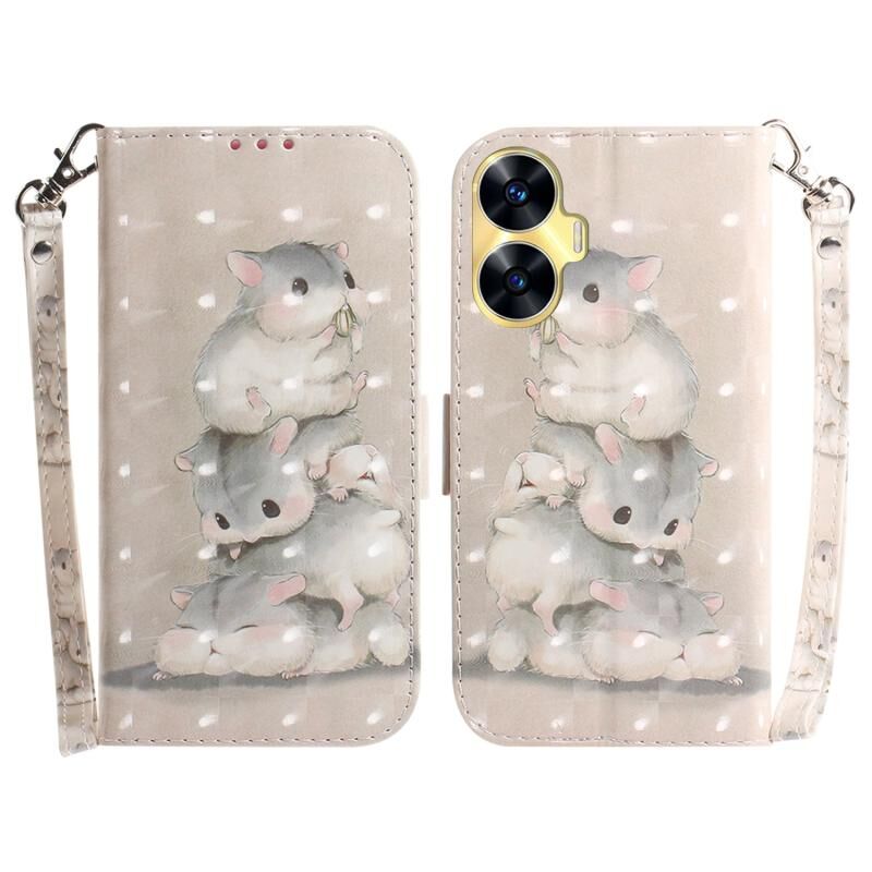 Θήκη τηλεφώνου δερμάτινη, οριζόντια, αναδιπλούμενη, με έγχρωμα 3D σχέδια για Realme C55 (Σκιουράκια)