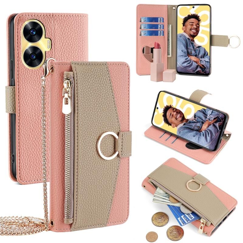 For Realme C55 4G Crossbody Litchi Texture Leather Phone Case(Pink)