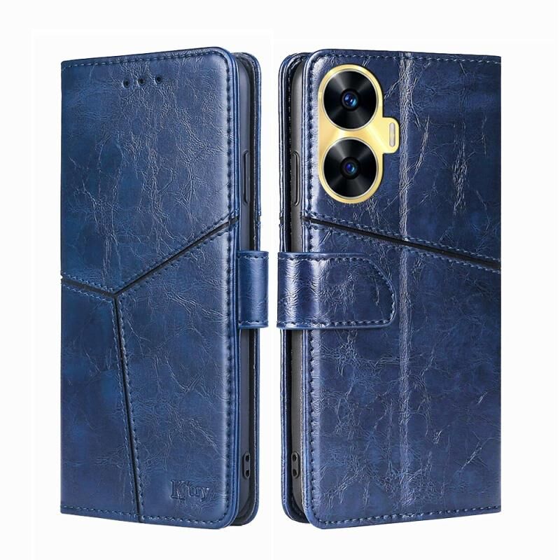 Για Realme C55 4G γεωμετρική ραφή Flip υπόθεση τηλεφώνου από δέρμα (μπλε)