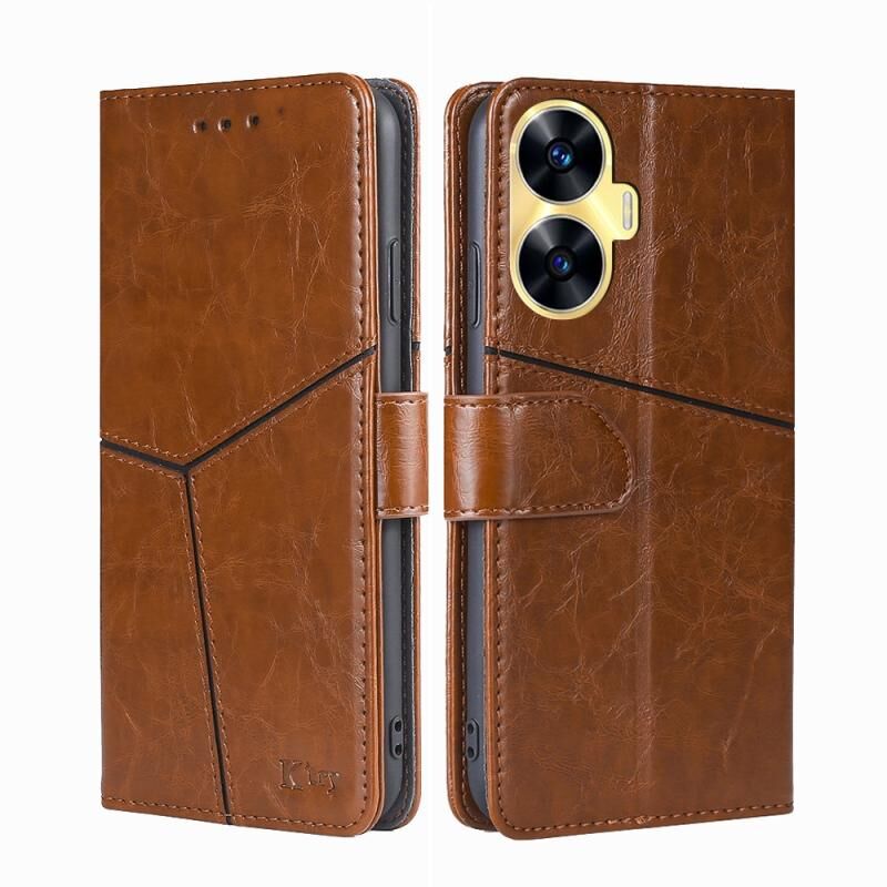 Για Realme C55 4G γεωμετρική ραφή Flip υπόθεση τηλεφώνου δέρμα (ανοιχτό καφέ)