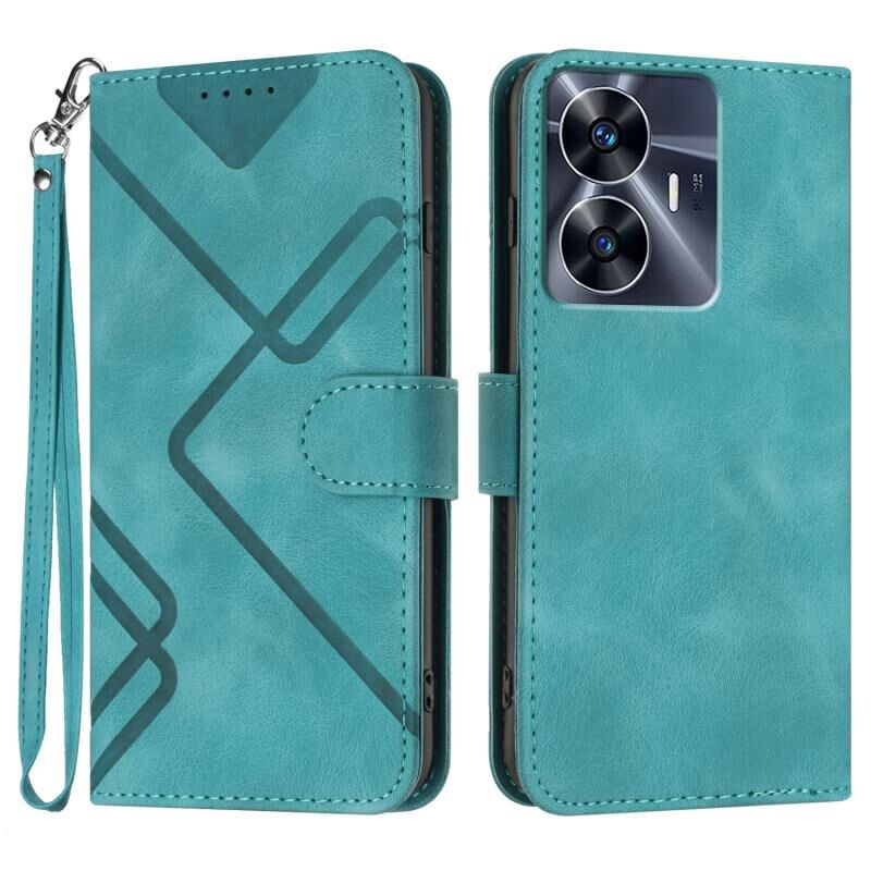 Για Realme C55 4G Global/Narzo N55 Line Pattern Skin Feel Leather Phone Case (γαλάζιο)