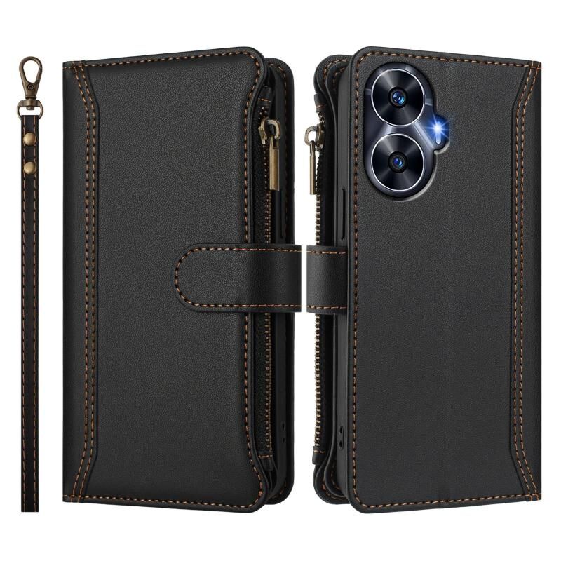 For Realme C55 4G Global / Narzo N55 Magnetic Closure 9 Card Slots Zipper Leather Case with Hand Strap(Black)