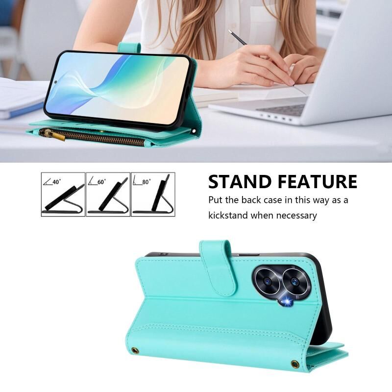 For Realme C55 4G Global / Narzo N55 Magnetic Closure 9 Card Slots Zipper Leather Case with Hand Strap(Mint Green)