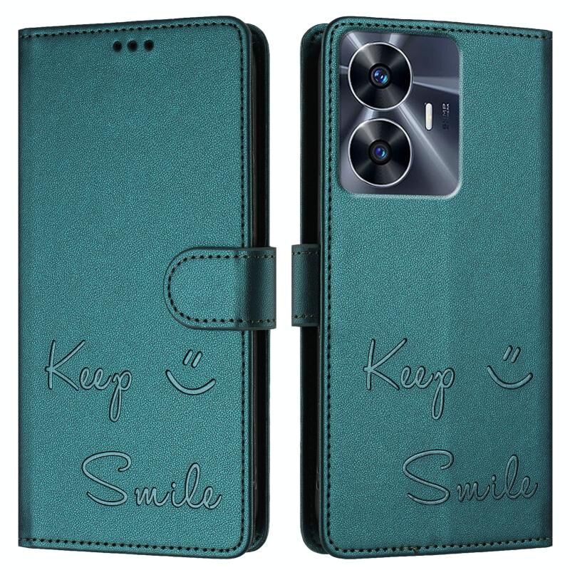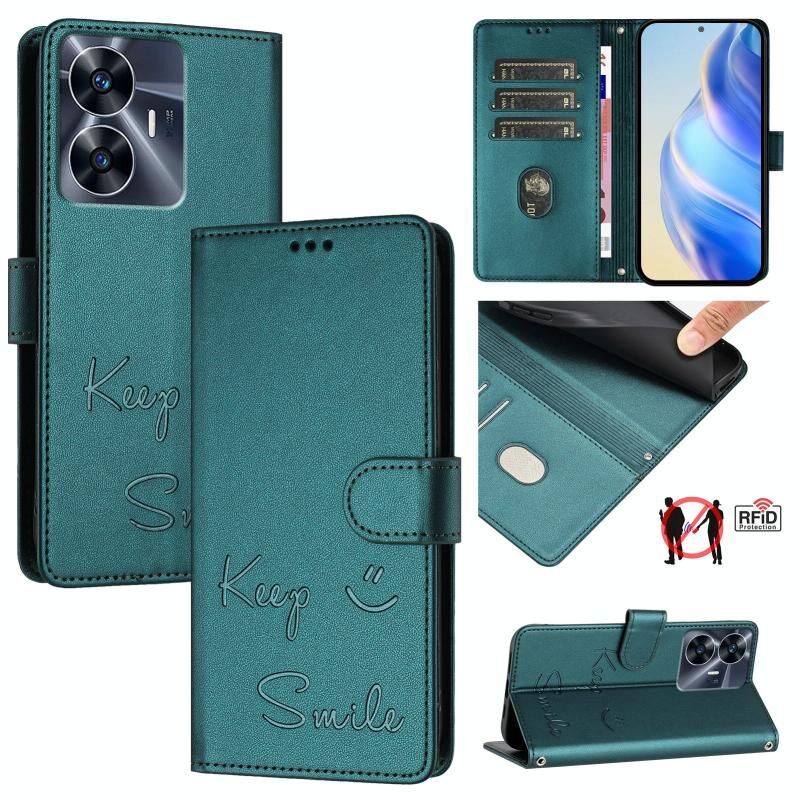 Για Realme C55 4G Global Smile ανάγλυφο RFID δερμάτινη θήκη τηλεφώνου (Peacock Green)