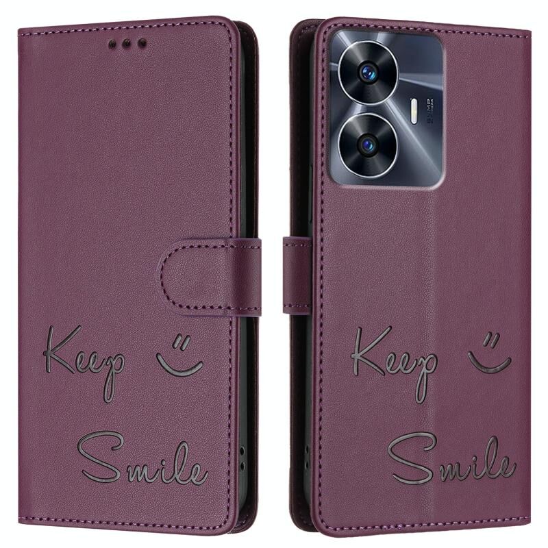Για Realme C55 4G Παγκόσμια χαμόγελο ανάγλυφο RFID δερμάτινη θήκη τηλεφώνου (Violet)