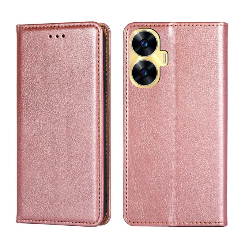 Για Realme C55 4G Gloss Oil Solid Color μαγνητική δερμάτινη θήκη τηλεφώνου (ροζ χρυσό)