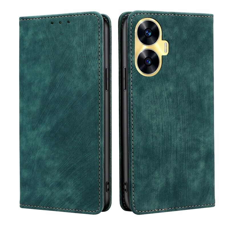 Για Realme C55 4G RFID Anti-theft Brush Μαγνητική θήκη τηλεφώνου από δέρμα (Πράσινο)