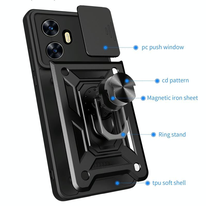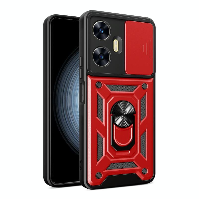 Για το Realme C55 4G συρόμενη κάμερα κάλυψης Σχεδιασμός TPU + PC τηλέφωνο υπόθεση (κόκκινο)