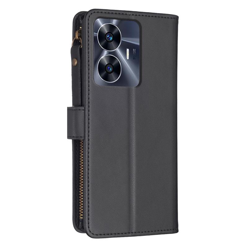Για Realme C55 Θήκη Τηλεφώνου Δερμάτινη Flip με Φερμουάρ και 9 Θήκες Καρτών (Μαύρο)