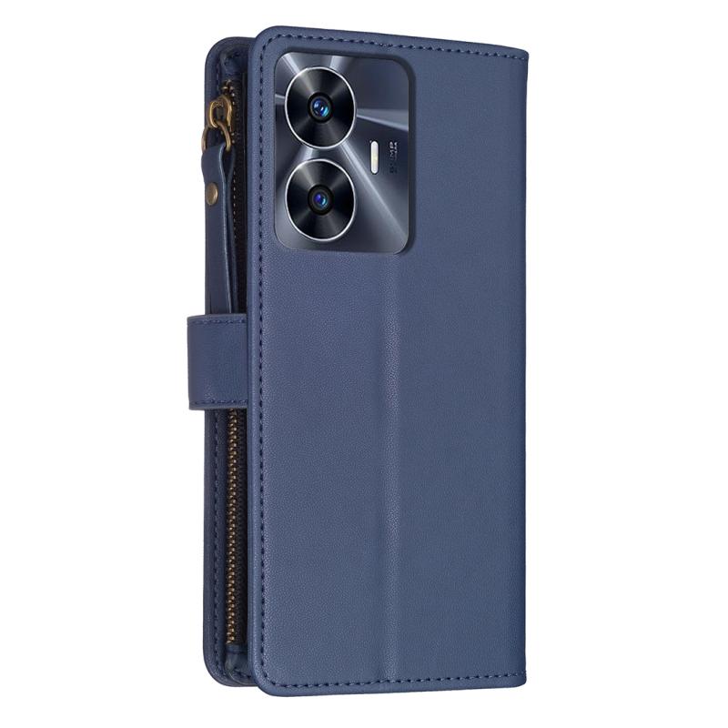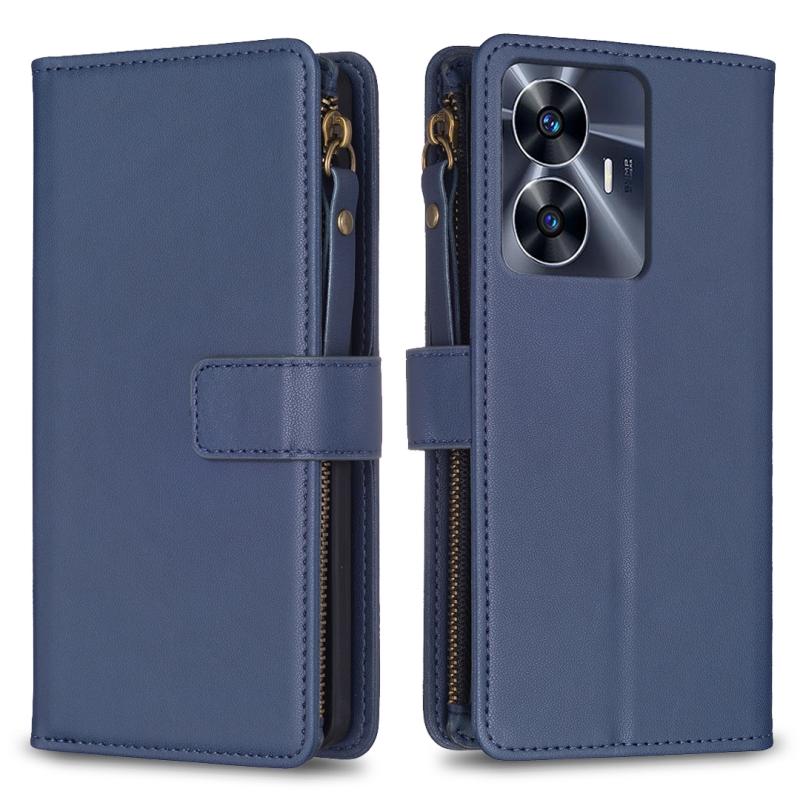 Για Realme C55 Θήκη Τηλεφώνου Δερμάτινη Flip με Φερμουάρ και 9 Θήκες Καρτών (Μπλε)