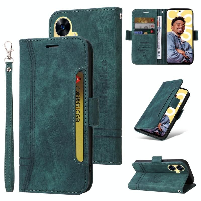 Για το Realme C55 BETOPNICE Διπλής όψης δερμάτινη θήκη τηλεφώνου με αγκράφα (πράσινο) (BETOPNICE)