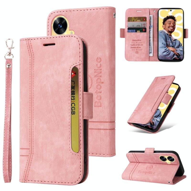 Για το Realme C55 BETOPNICE Διπλής όψης δερμάτινη θήκη τηλεφώνου με αγκράφα (ροζ) (BETOPNICE)