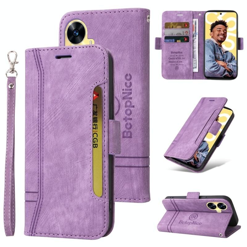 Για το Realme C55 BETOPNICE Διπλής όψης δερμάτινη θήκη τηλεφώνου με αγκράφα (μωβ) (BETOPNICE)