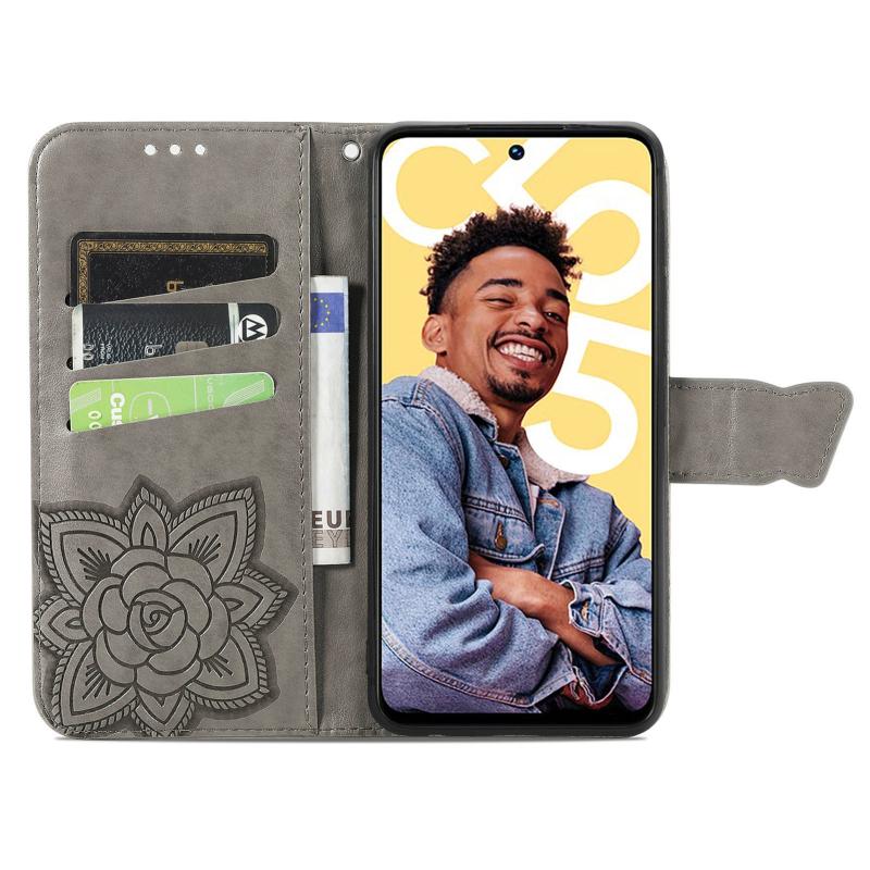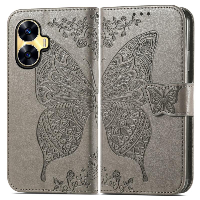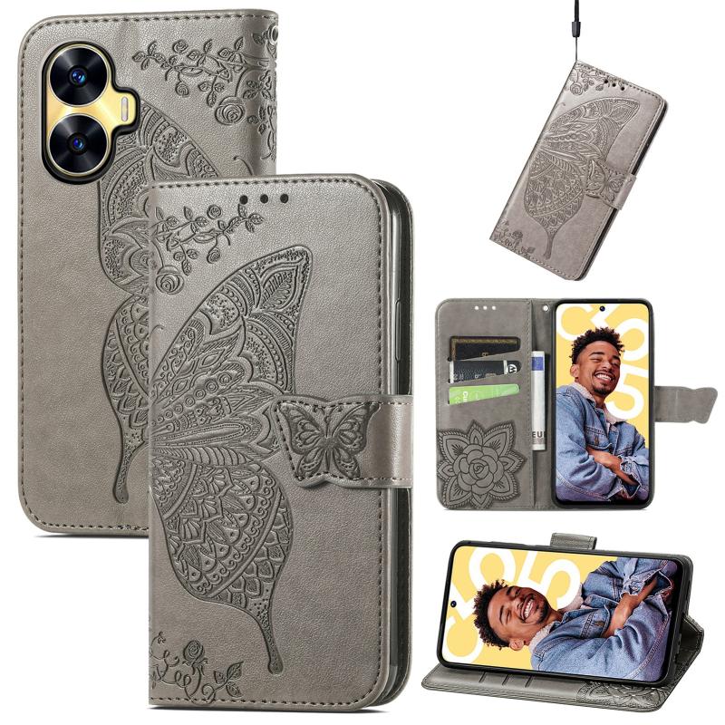 For Realme C55 Butterfly Love Flower Embossed Leather Phone Case(Gray)