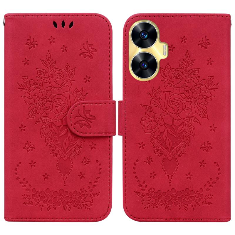 Θήκη τηλεφώνου από ανάγλυφο δέρμα για Realme C55 Butterfly Rose (Κόκκινο)