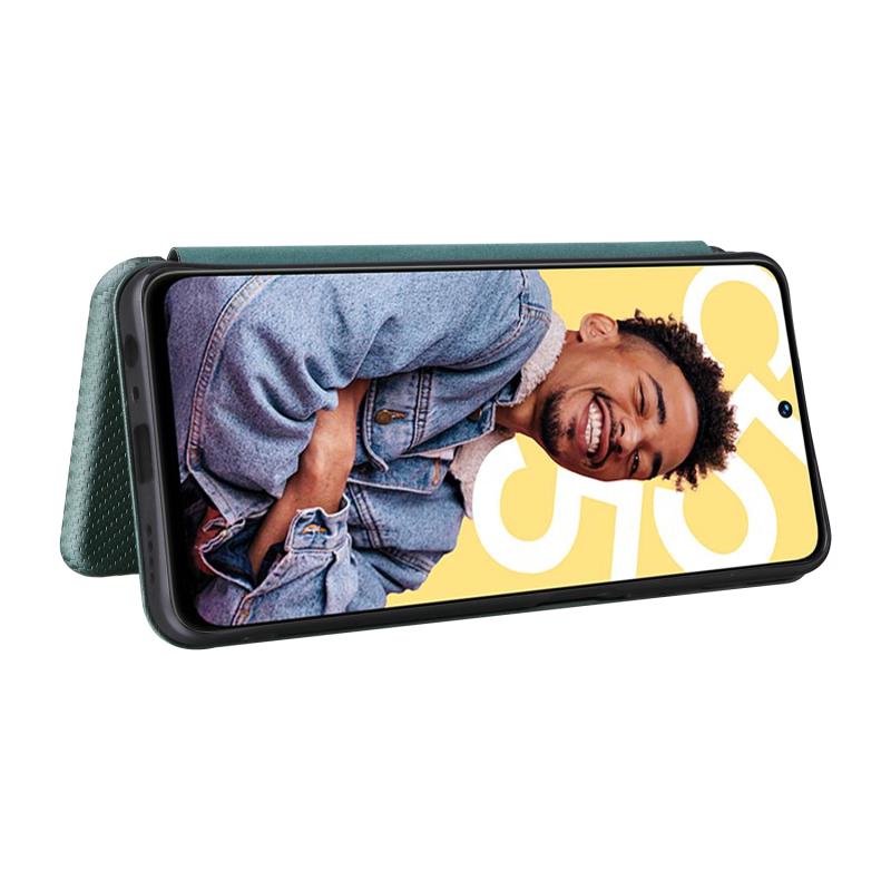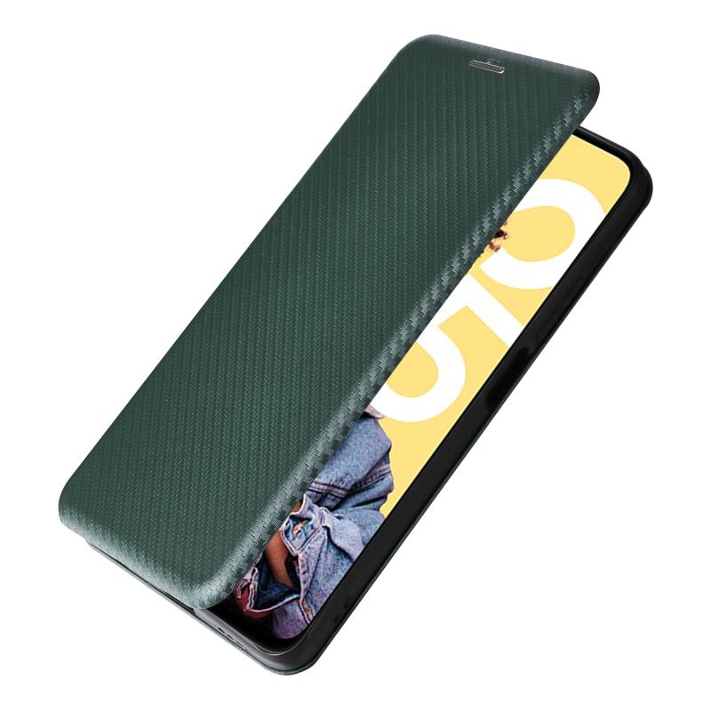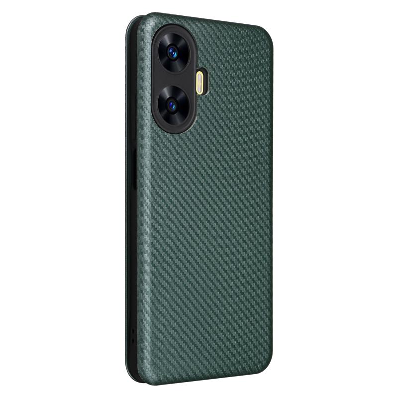Θήκη τηλεφώνου Realme C55 με υφή ανθρακονήματος, δερμάτινη, αναδιπλούμενη (Πράσινη)